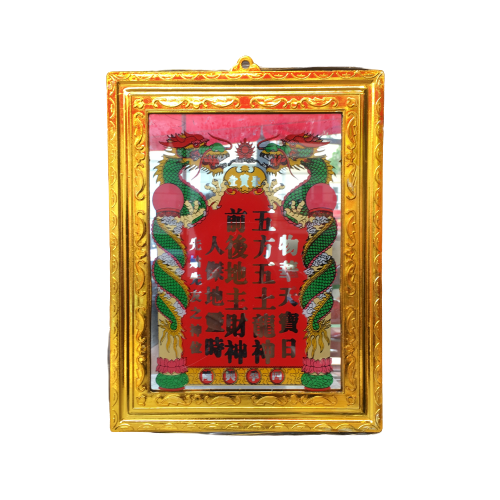 Một bộ phụ kiện thờ (Thần tài) màu vàng đầy đủ gồm : 1 Bát hương, 1 bài vị, ông thần tài ông địa, 1 lọ hoa, 2 bình đựng gạo muối, 1 bình đựng rượu, 1 đế chén.