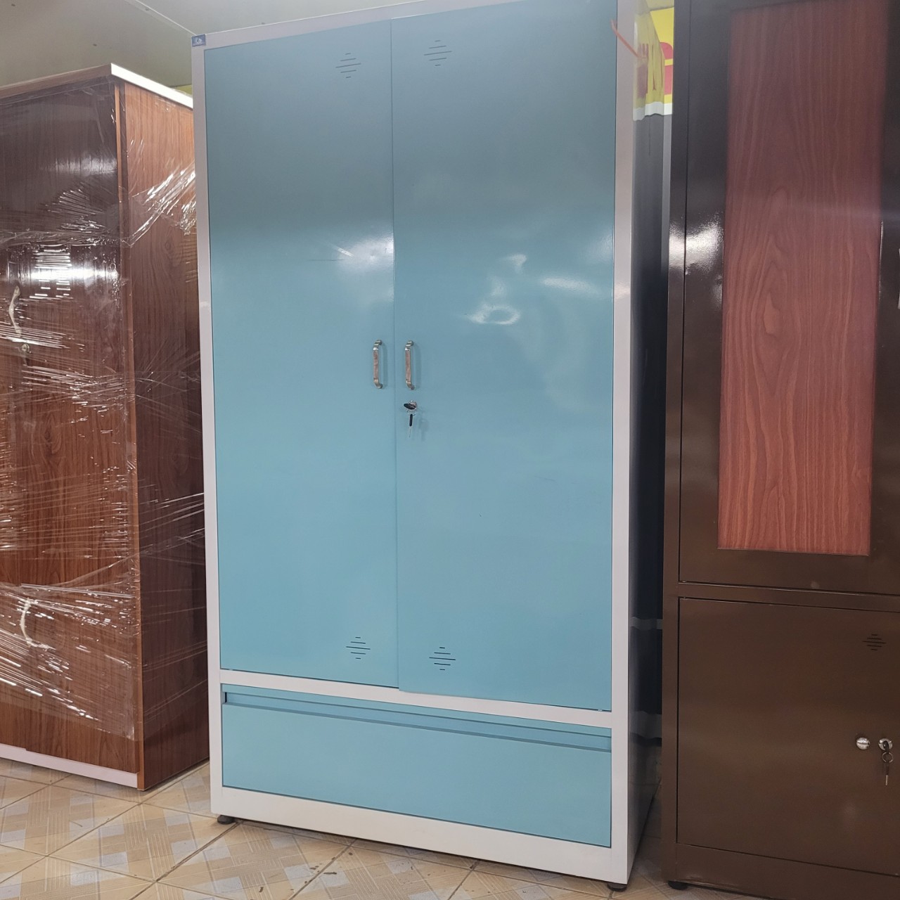 • Tủ áo sắt có gồm 2 cánh to, 2 khoang được chia làm nhiều đợt nhỏ, có thanh treo ngang.